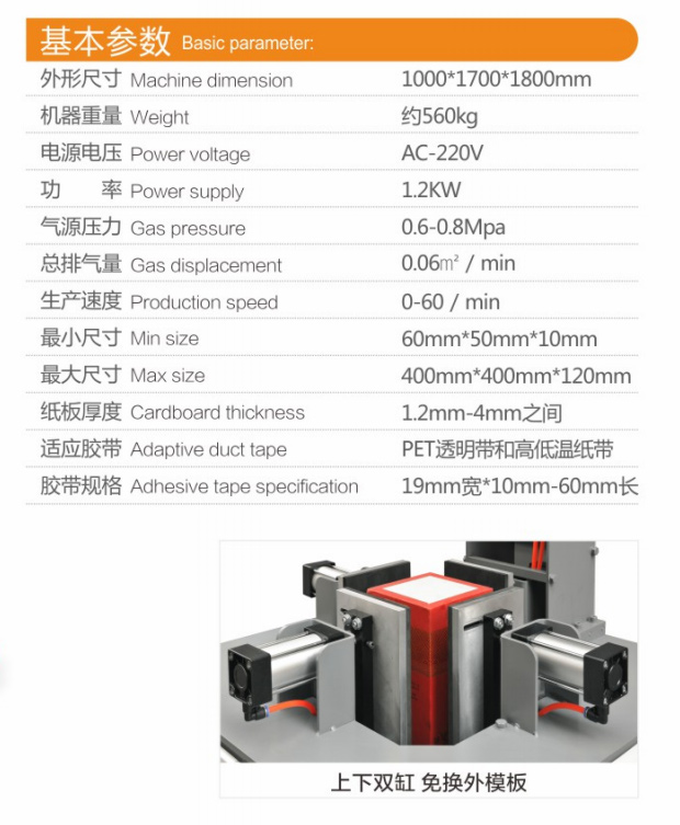 DG-700B豎式酒盒壓盒機為德高機械DG 700酒盒壓盒機的第二代新產(chǎn)品,最新開發(fā)設(shè)計的這款新機型,整機外觀設(shè)計緊湊,四面均為雙氣缸,壓力更為均衡、合理,五面模板可調(diào),100-150寬*200-300高尺寸以內(nèi)的酒盒免換外模板,操作方便生產(chǎn)效率高。